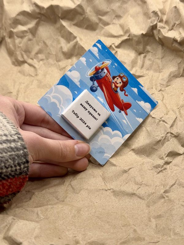 Отримайте цю позицію безкоштовно при покупці «Листівка квадрат (80х80 мм) + шоколад із логотипом для організацій заходів 100 шт»